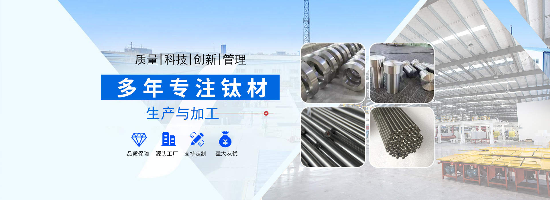陜西辰軒鑫達(dá)金屬材料有限公司位于具有“中國(guó)鈦城”之稱的陜西寶雞高新技術(shù)開發(fā)區(qū),公司依托“中國(guó)鈦城”的雄厚的行業(yè)資源,強(qiáng)大的有色金屬科研及制造實(shí)力,完整的有色金屬工業(yè)制造產(chǎn)業(yè)鏈,形成了一套完整的生產(chǎn)流程,公司主要從事有色金屬的加工,生產(chǎn)及銷售及工業(yè)及民用鈦、鎳、鉬及其他稀貴金屬材料的深加工研究生產(chǎn)及國(guó)際、國(guó)內(nèi)貿(mào)易,集有色金屬材料銷售、產(chǎn)品設(shè)備制造及新產(chǎn)品開發(fā)為一體。主要以生產(chǎn)鈦材及其他金屬材料為主,主導(dǎo)產(chǎn)品有:鈦錠、鈦棒、鈦絲、鈦板、鈦法蘭等以及其他有色金屬材料:鋯板、鋯管、鋯棒、鋯鈀、鋯餅、鈮管、鈮棒、鉭板、鉭棒、鉭管等有色金屬。產(chǎn)品廣泛應(yīng)用于化工、冶金、石油、紡織、醫(yī)藥、輕工、環(huán)保···